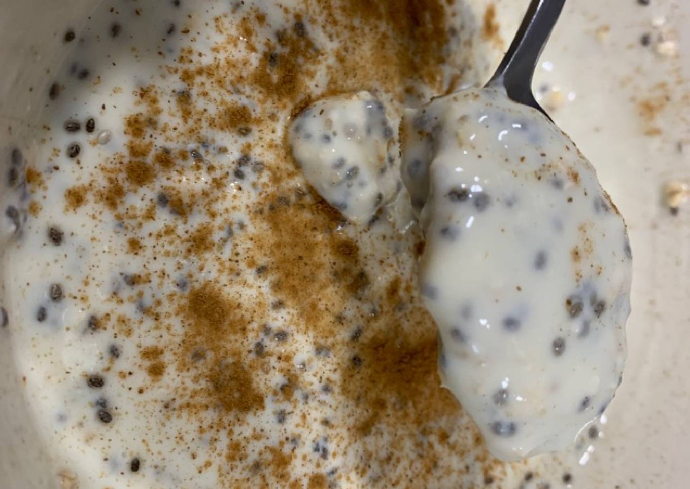 - Añadimos la fruta a trozos y espolvoreamos la canela para darle más gusto. Ya podemos servir!