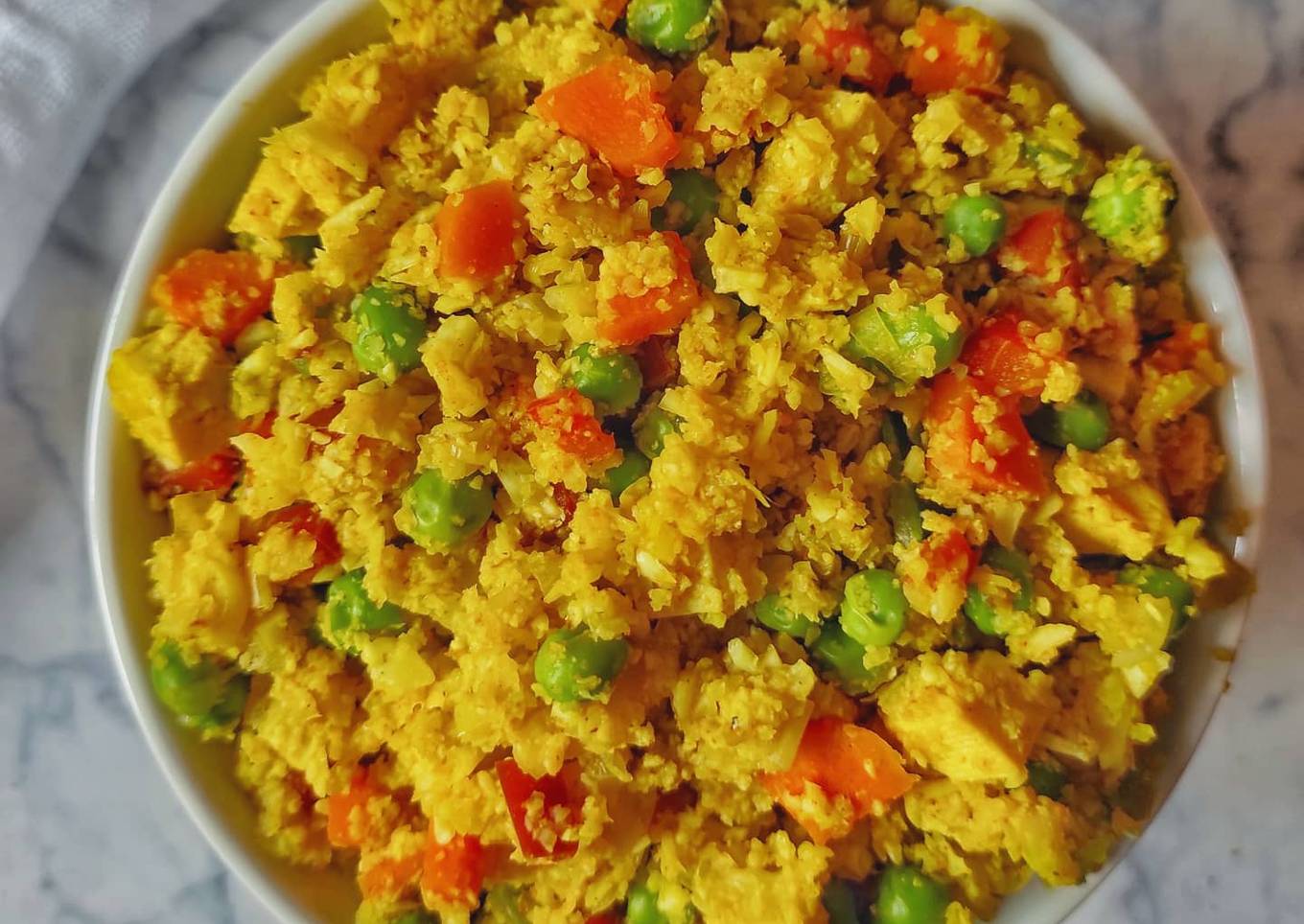 - Cuando estén listas, añadimos la coliflor rallada y el curry, la cúrcuma y el jengibre, cocinamos unos 10 minutos y listo.