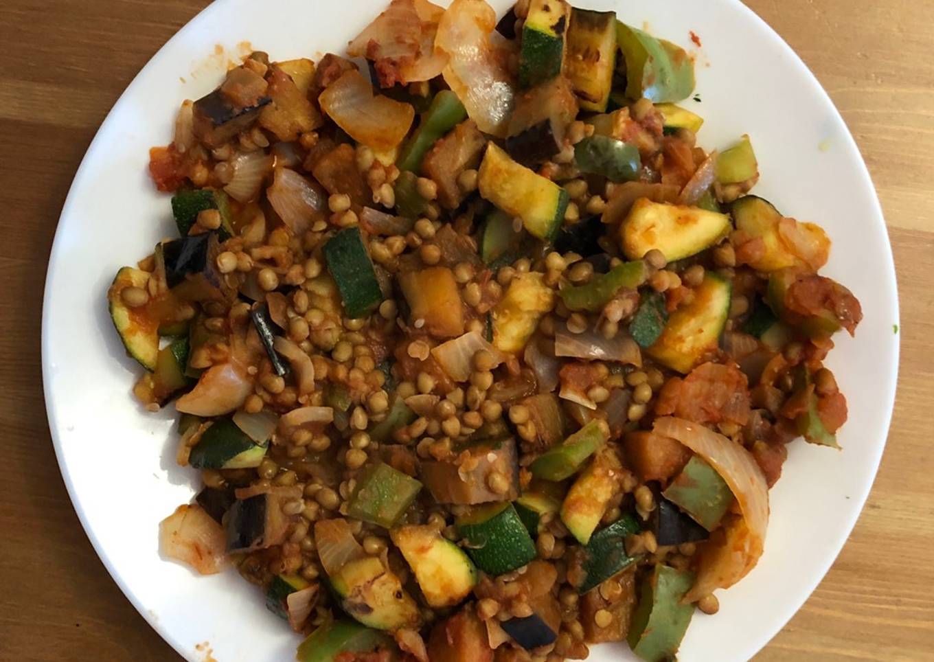 Hey everyone, I hope you're having an incredible day today. Today, I will show you a way to prepare a distinctive dish, Pisto de verduras con lentejas. One of my favorites. For mine, I will make it a bit unique. This is gonna smell and look delicious.