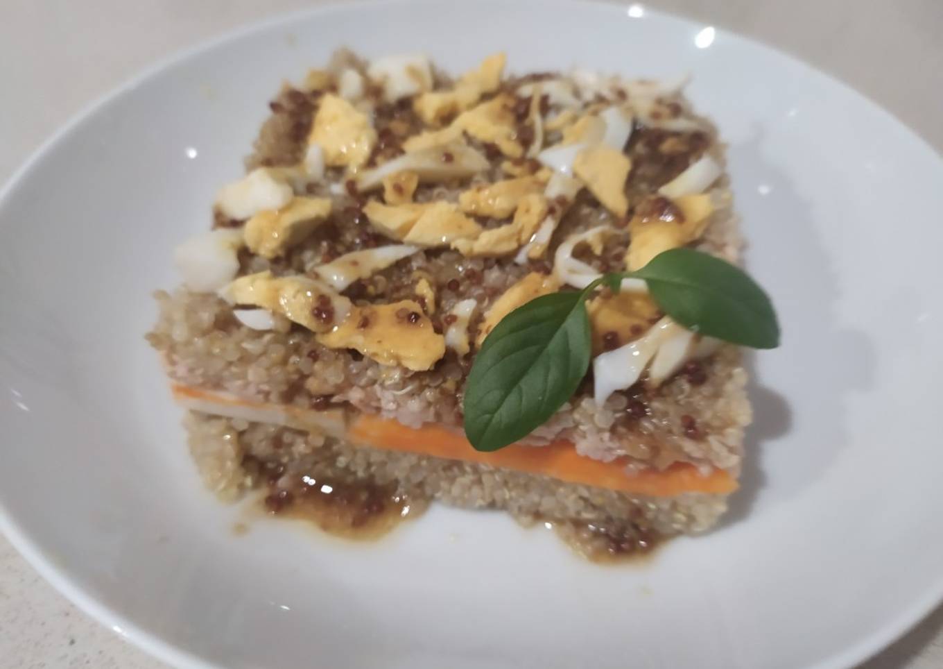 - Ponemos la última capa de quinoa y picamos el huevo encima.