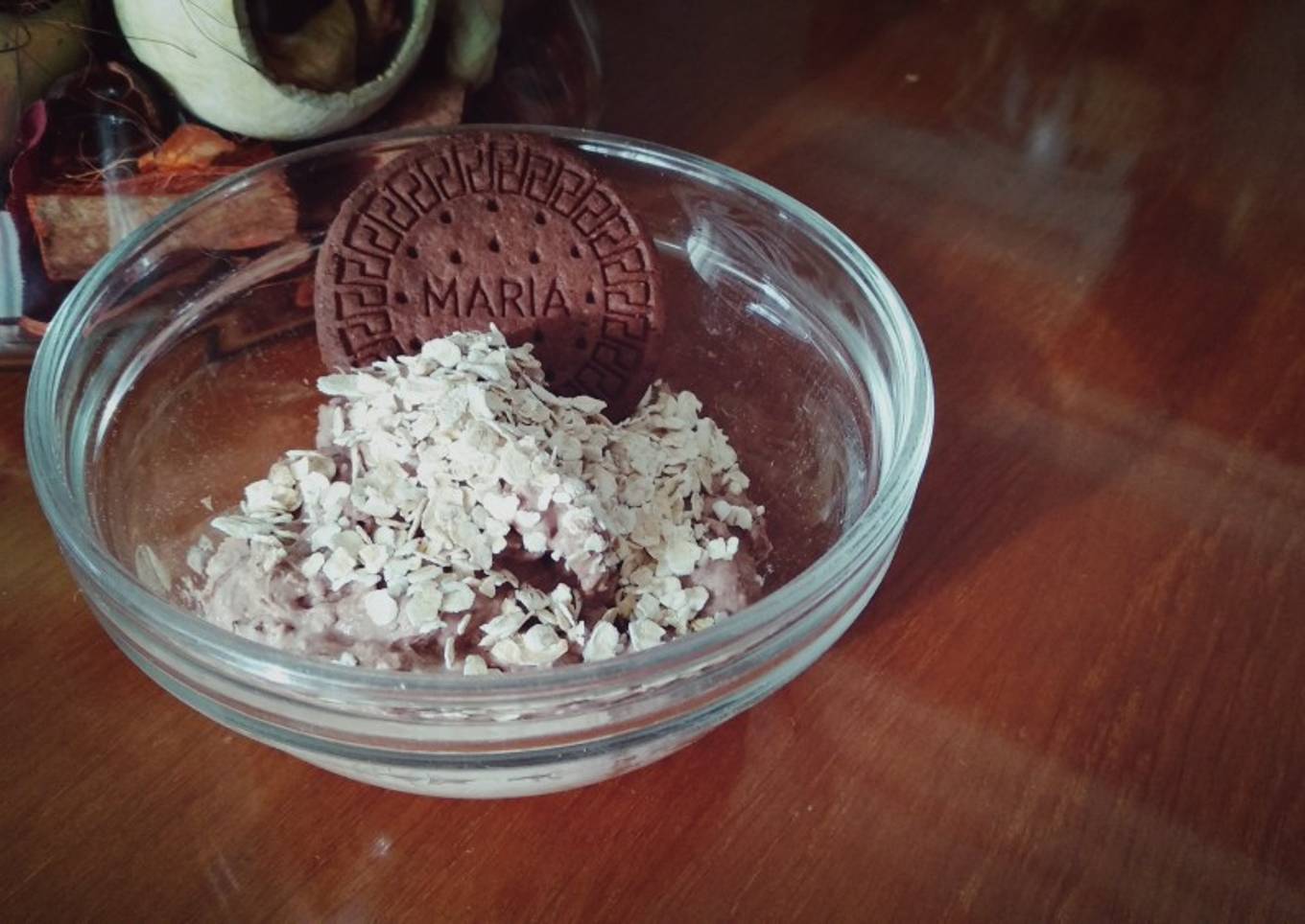 - En un bol nos ponemos 3 cucharadas y algo de avena por encima (también puse una galletita jajaja) ¡y a comer!
