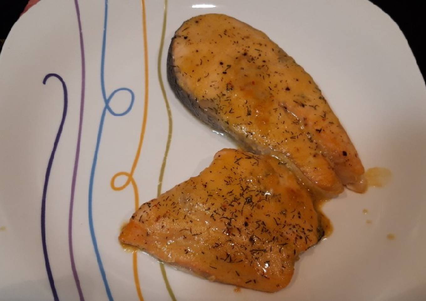 Salmón al horno con salsa de miel y mostaza