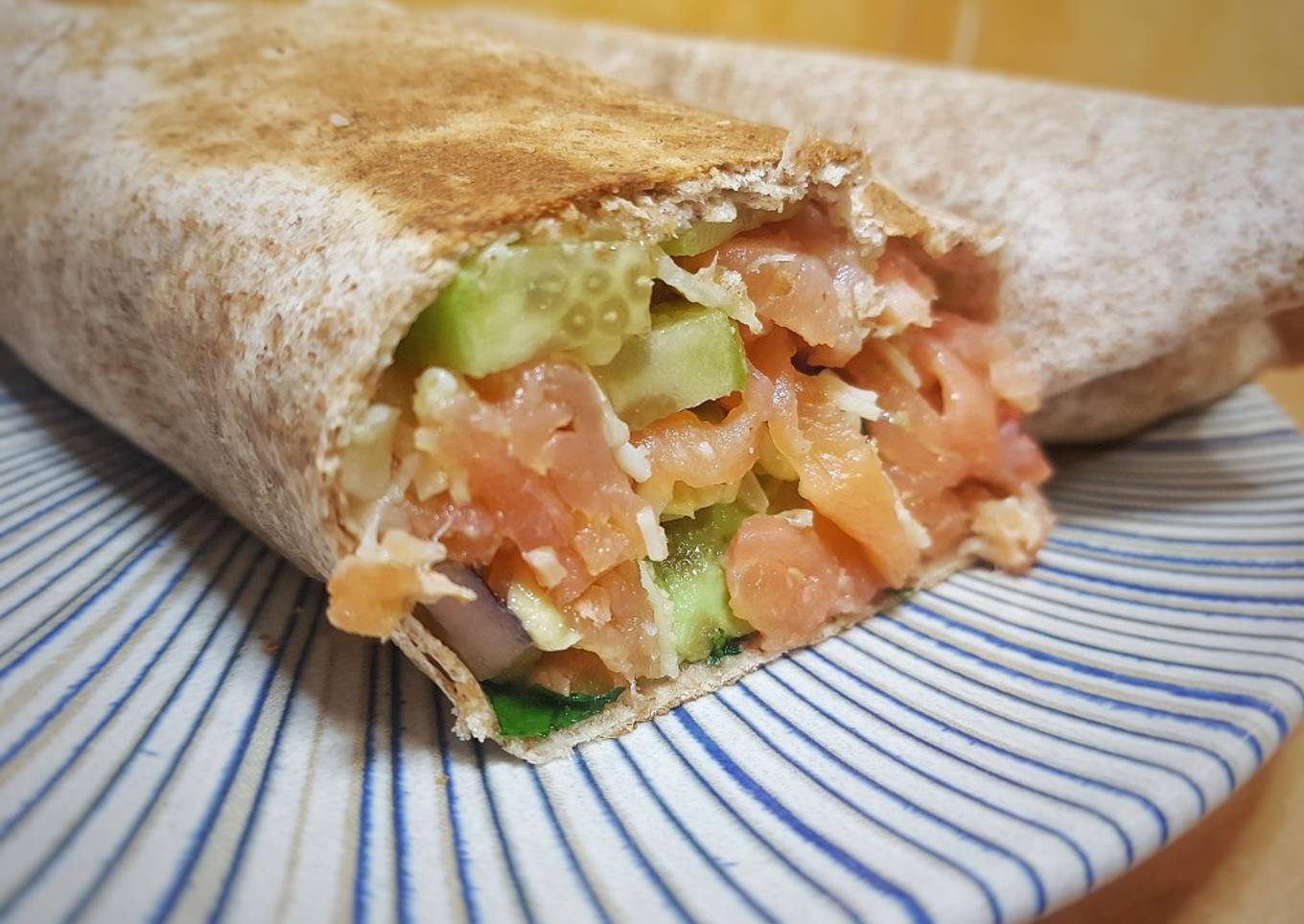 Instructions to make to make Wrap de salmón ahumado, aguacate y pepino