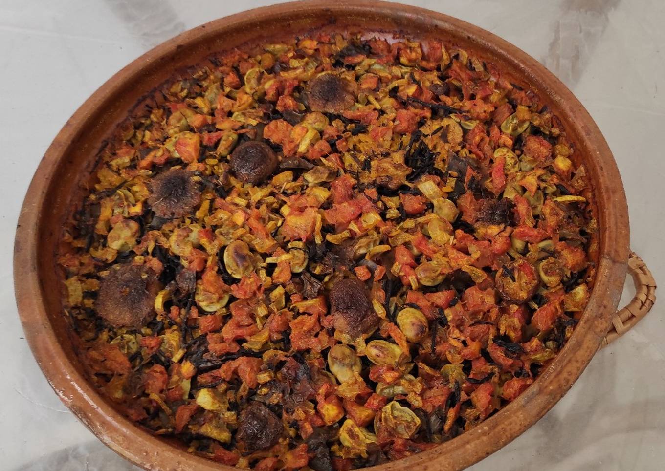 Arroz integral, tomate, shiitake y verduras al horno