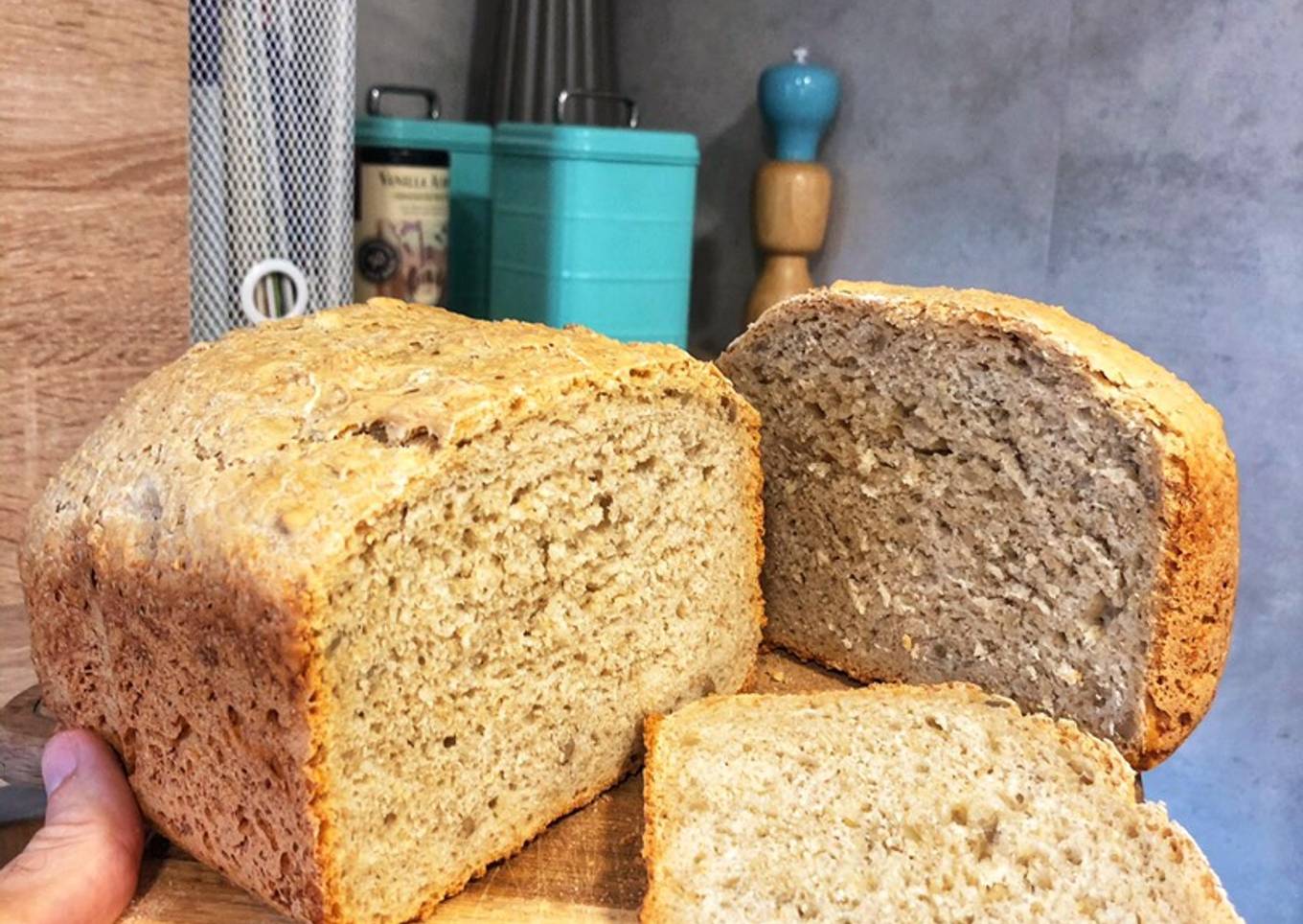 - Pasado el tiempo del programa, saca el pan de la cubeta y déjalo enfriar sobre una rejilla.