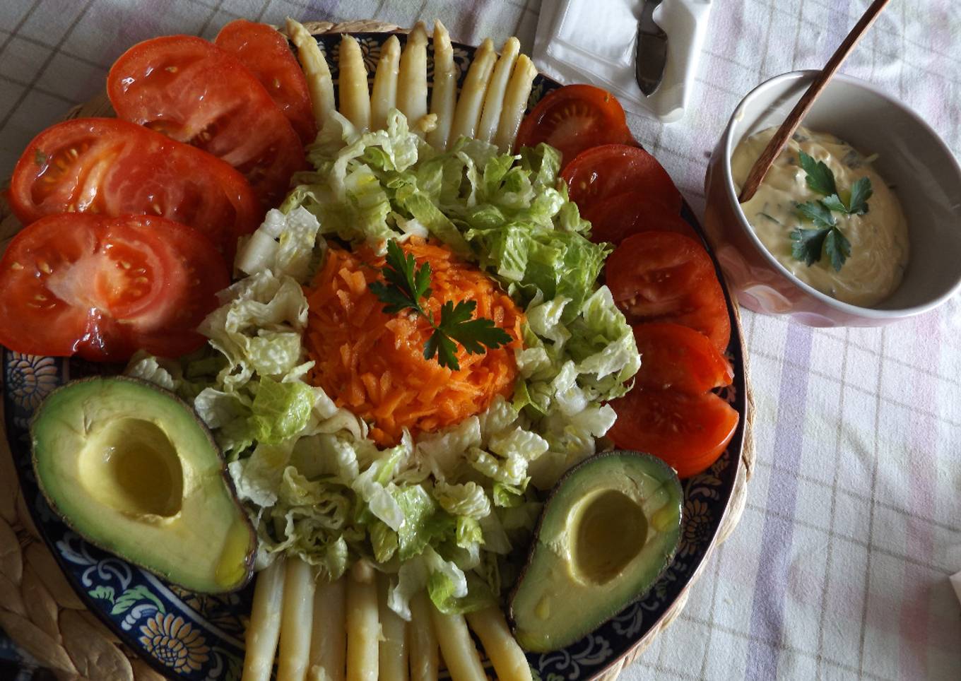 Ensalada vitaminas con salsa de albahaca