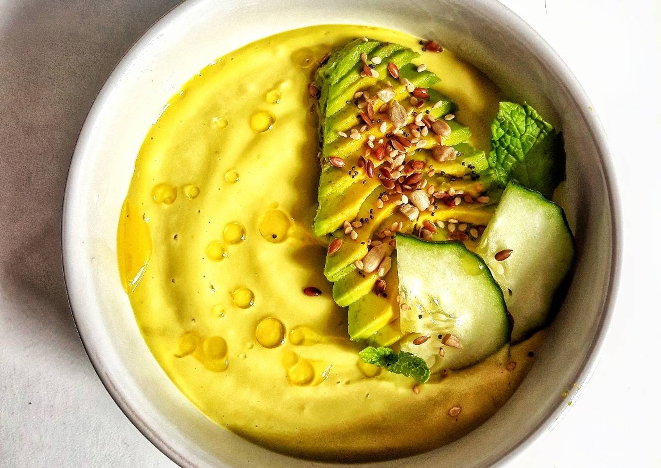 - En una batidora aƱadimos todos los ingredientes menos el aceite, trituramos y vamos aƱadiendo el aceite hasta que estĆ© todo bien emulsionando. Dejamos reposar en la nevera un par de horas. Yo le puse medio aguacate, rodajas de pepino y unas semillas de guarnición. ¡RiquĆsimo!š