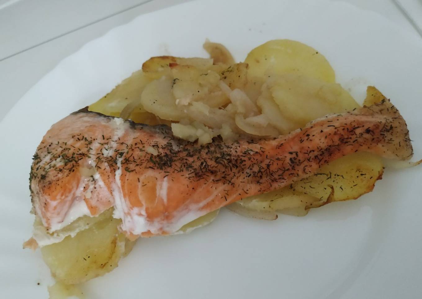 Salm贸n al horno con patatas panaderas 馃悷