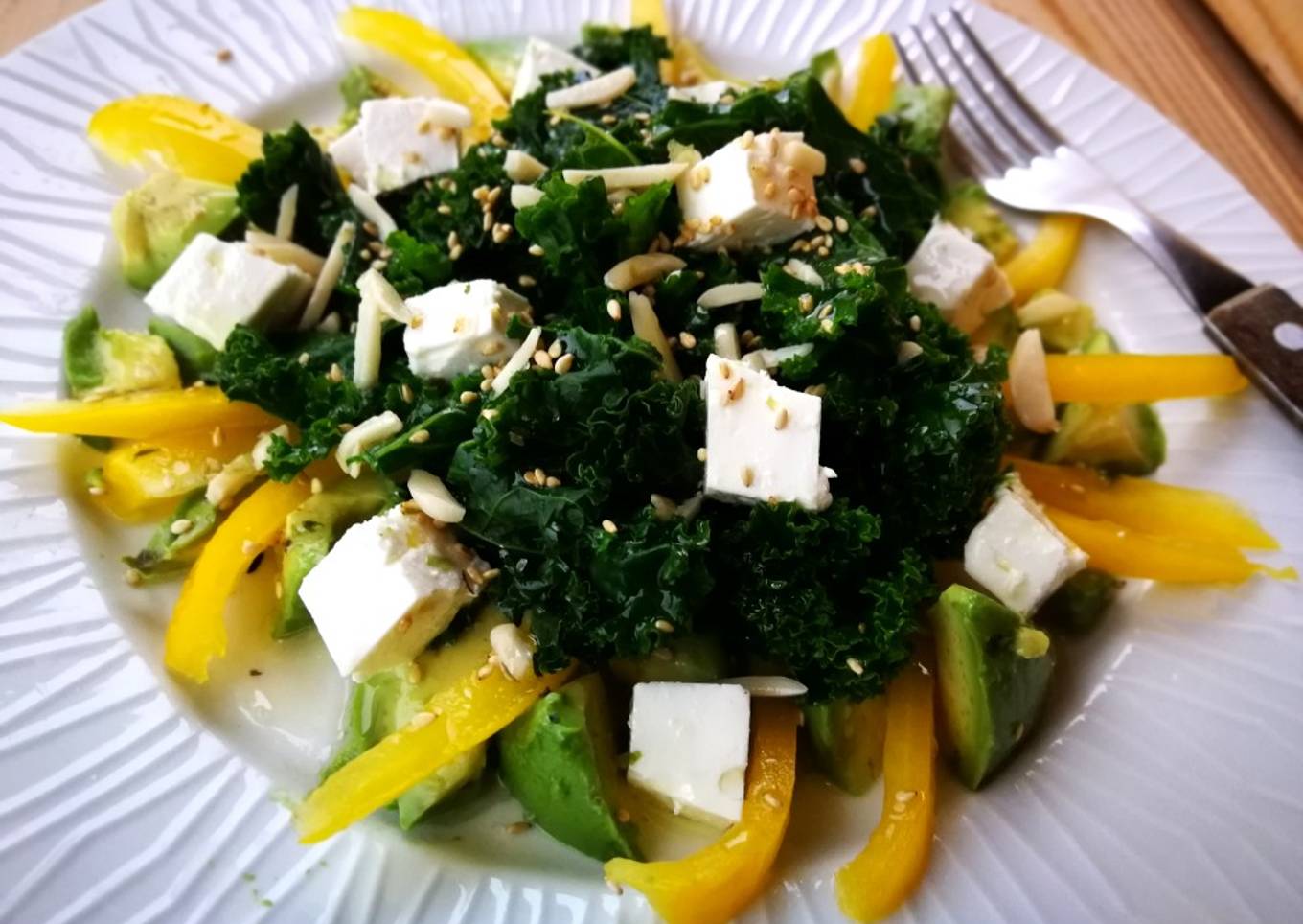 Hello everybody, it's Drew, welcome to our recipe page. Today, I'm gonna show you how to prepare a distinctive dish, Ensalada de col kale con aguacate y queso Feta. It is one of my favorites food recipes. This time, I will make it a little bit tasty. This is gonna smell and look delicious.