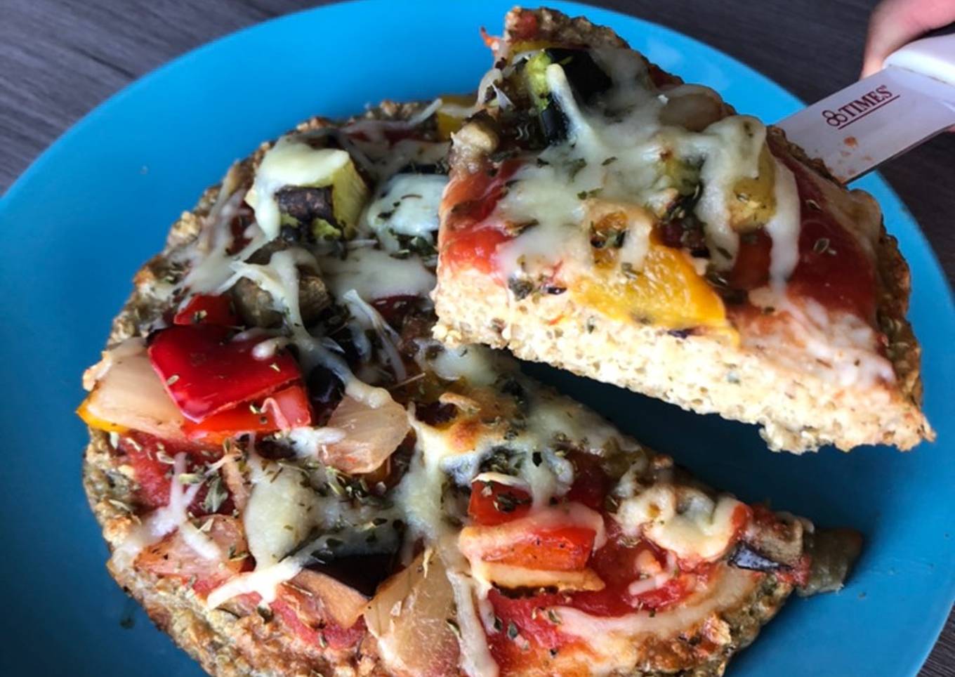 - Una vez esté cocinada la base, incorporamos el tomate triturado, las verduras en trozos, el queso mozzarella rallado y el orégano. Metemos en el horno 15 minutos a 160°. ¡Y a disfrutar!