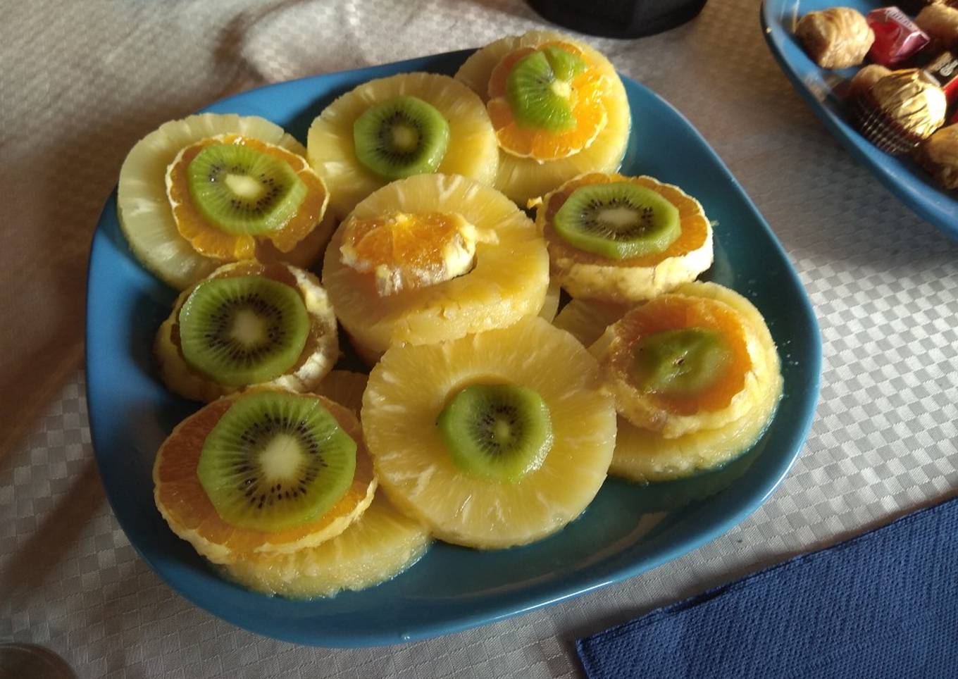 - Cortar el kiwi y las naranjas a rodanjas una buena presentación y un poco de azúcar encima
